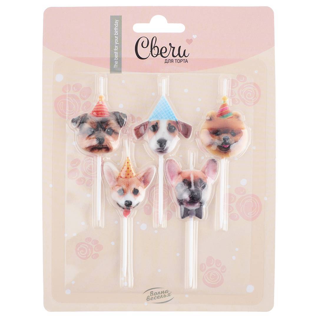 Набор свечей Фигура, Собачки, 6 см, 5 шт. с держат.