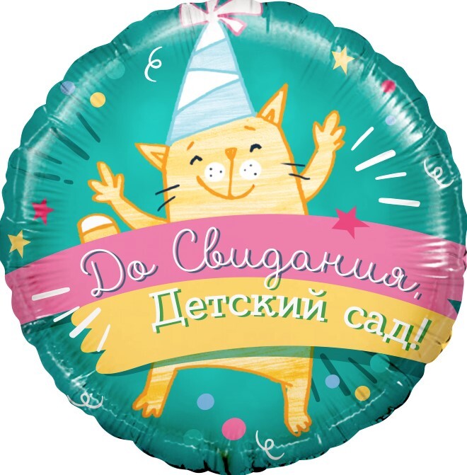 Шар (18''/46 см) Круг, До Свидания, Детский Сад! (котенок-выпускник), Бирюзовый