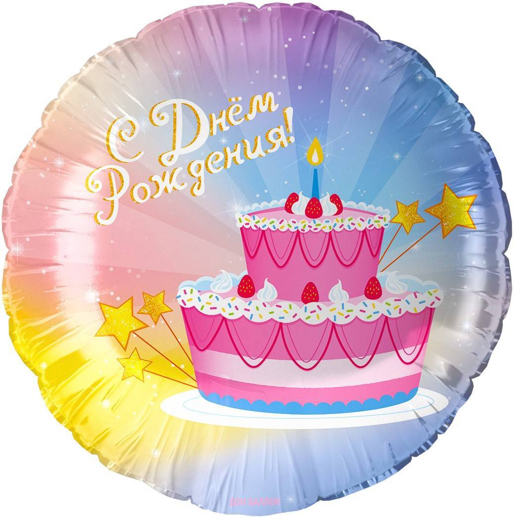 Шар (18''/46 см) Круг, С Днем Рождения! (тортик)