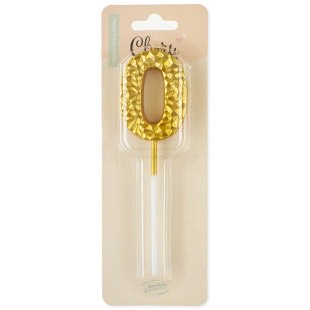 Свеча Цифра, 0 Кристалл, Золото, Металлик, 3,5*4,5 + 7 см, 1 шт. с держат.