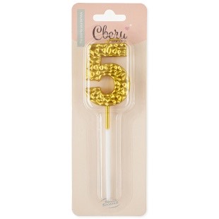 Свеча Цифра, 5 Кристалл, Золото, Металлик, 3,5*4,5 + 7 см, 1 шт. с держат.