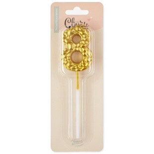Свеча Цифра, 8 Кристалл, Золото, Металлик, 3,5*4,5 + 7 см, 1 шт. с держат.