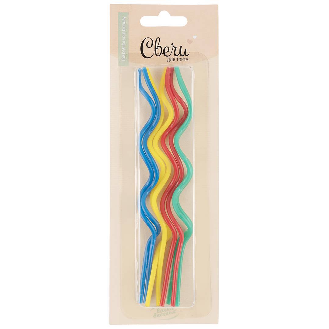 Свечи Коктейльные, Тонкие спирали, Ассорти, 15 см, 8 шт.