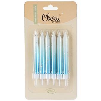 Свечи Серебряные искры, Белый/Голубой, Градиент, 0,7*8 см, 6 шт. с держат.