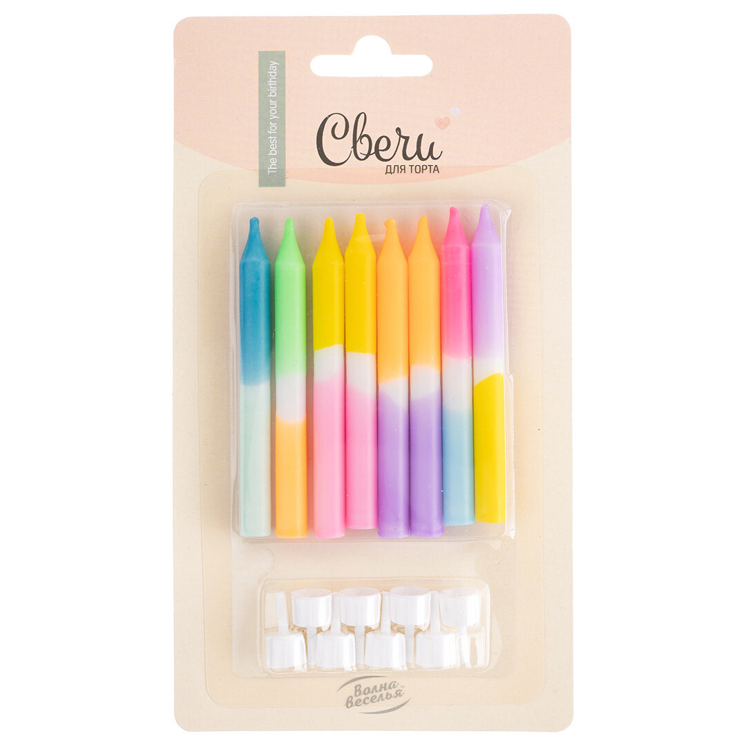 Свечи Волшебный микс, Ассорти, Градиент, 0,55*8 + 1 см, 8 шт. с держат.
