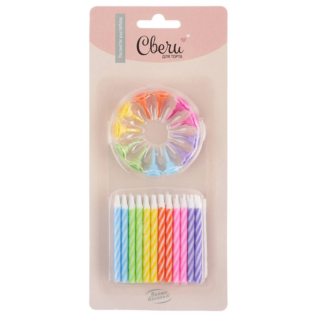 Свечи Яркое ассорти, 6 см, 24 шт. с держат.